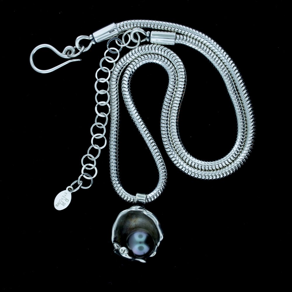 The unique shells used in this collection are created with a technique called water casting. When molten silver is released into a vessel of water, all types of formations result. But when done just right, these beautiful shells form.